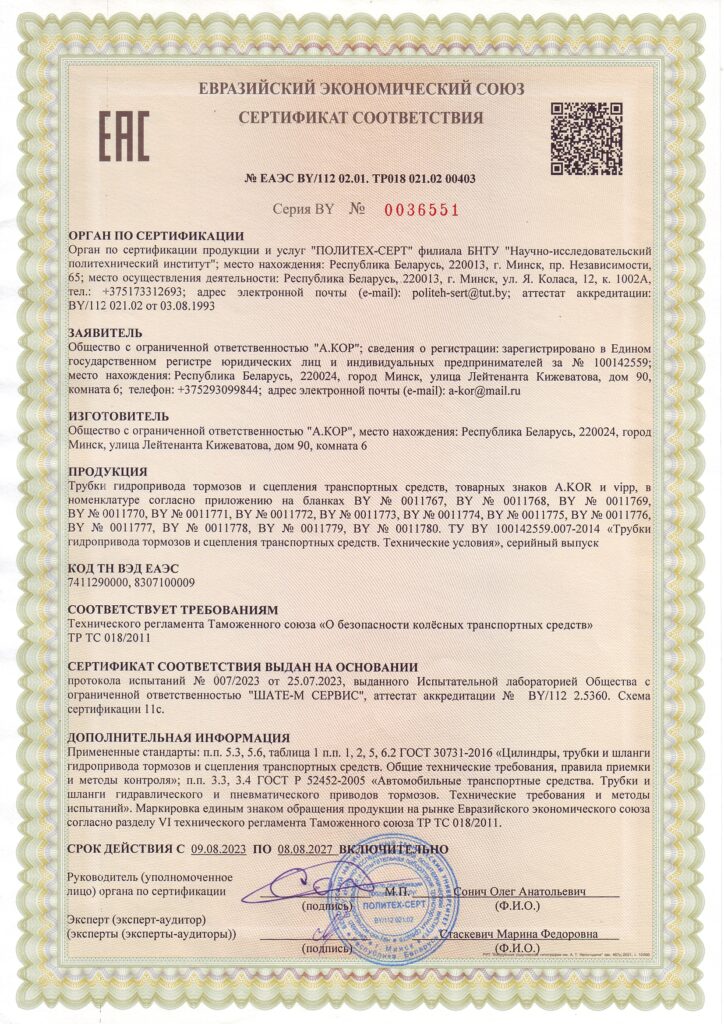 Работая на рынке с 1991 года предприятие ООО «А.КОР» специализируется на производстве трубок гидропривода тормозов и сцепления и соединительных элементов для тормозных, топливных и масляных систем, используемых в автомобильной и сельскохозяйственной промышленности.